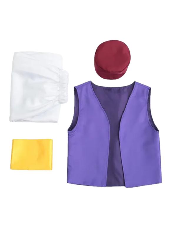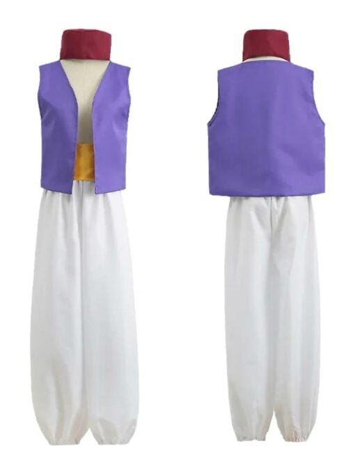 This vibrant Aladdin costume features all the essential elements to transform you into the charming street rat turned prince. With a regal purple vest, a waistband fit for a sultan, and billowy white harem trousers, you’ll look like you just stepped out of the pages of a fairytale. And let’s not forget the iconic red fez perched atop your head, adding an extra touch of Arabian flair!