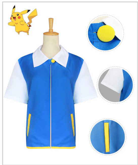Step into the shoes of everyone’s favorite Pokemon trainer with our thrilling costume! Firstly, The set includes a comfy blue jacket with short white sleeves, perfectly capturing Ash’s signature style. Complete the look with a pair of green fingerless gloves, And of course, no Ash Ketchum costume is complete without his iconic baseball cap, featuring the instantly recognizable logo.