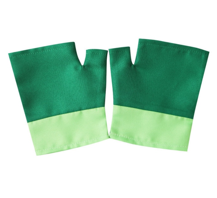 - Green fingerless gloves,