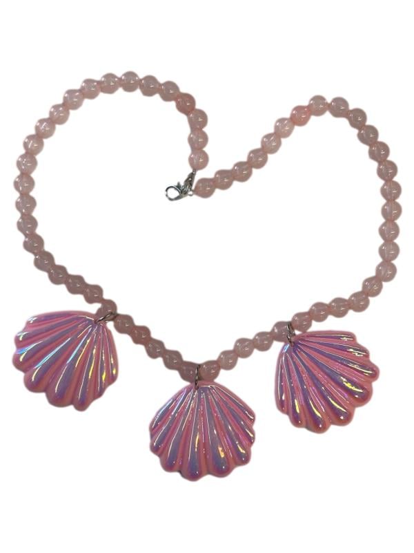 Embrace the spotlight in a mid-length pink and white gingham dress, reminiscent of Barbie’s signature style. The dress features adjustable tie-up straps that ensure a perfect fit for every aspiring Barbie, and a convenient zip-up back for effortless elegance. The attention to detail is impeccable, with a stunning beaded shell necklace that adds a touch of sophistication.