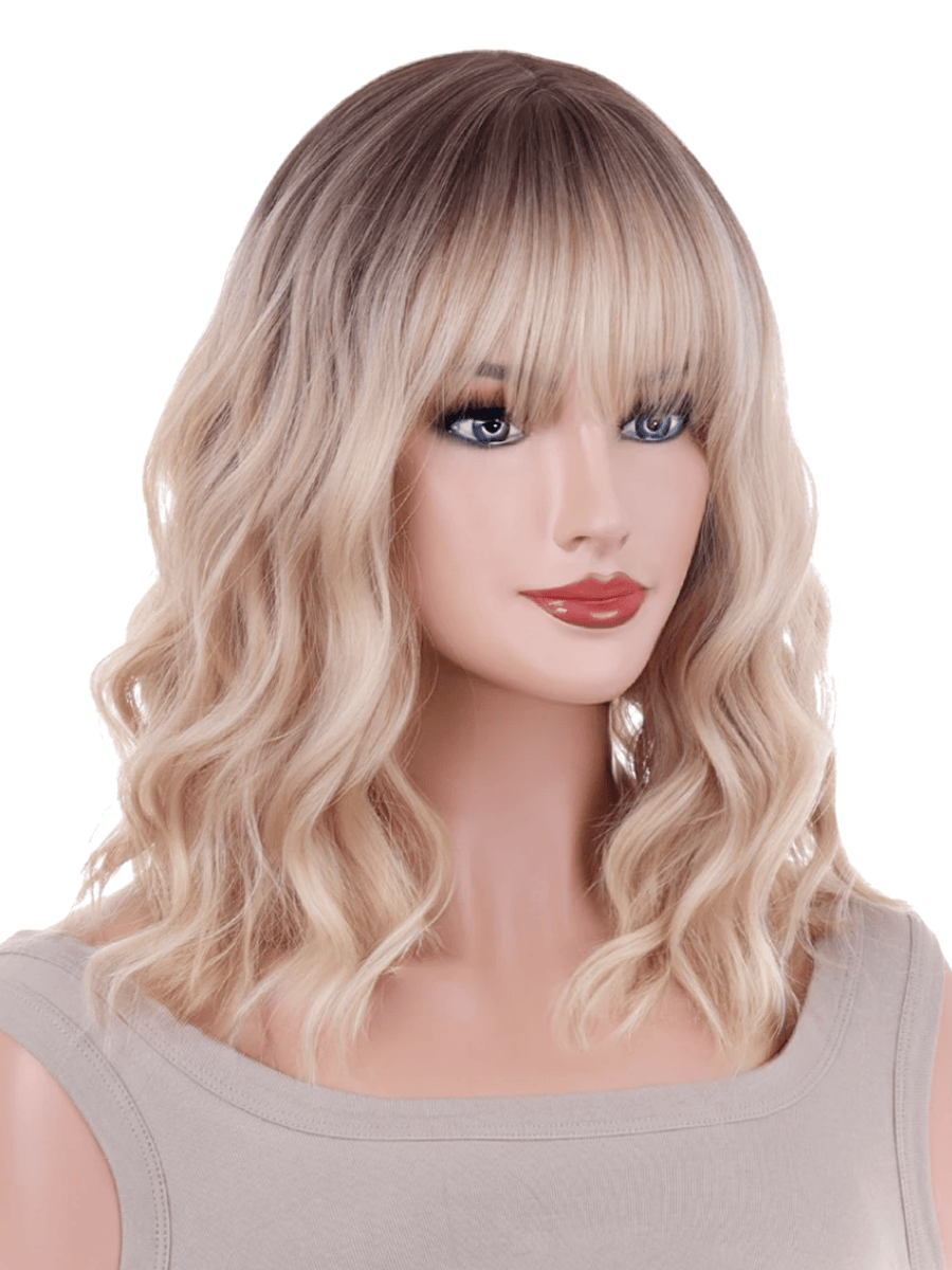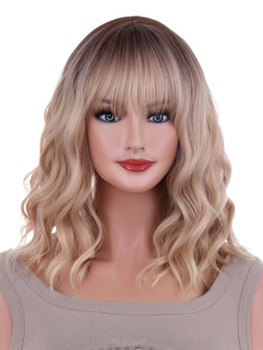 Unleash your inner blonde bombshell with this stunning Blonde Wavy Bob Wig with Fringe! Perfect for those who want to emulate Taylor swift. Switch up your style effortlessly, this wig features shoulder-length, wavy blonde strands that cascade beautifully, complemented by a darker ombré root for a natural, dynamic look. The full fringe adds an extra touch of chic, making this wig ideal for both casual and bold transformations.