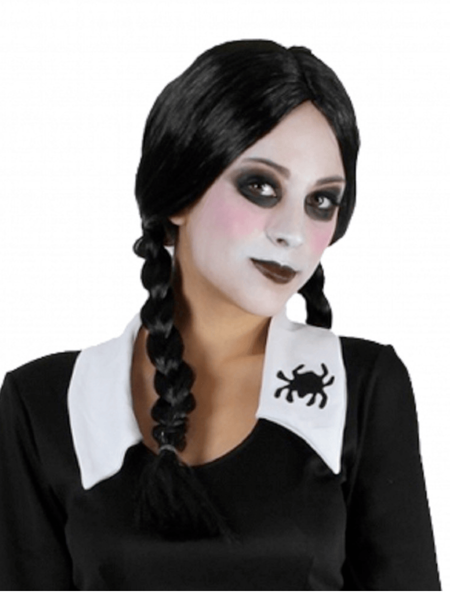 With its authentic design and attention to detail, our Creepy School Girl Wig is the ultimate accessory for fans of the Addams Family or anyone looking to add a touch of darkness to their costume collection. So, grab yours today and unleash your inner Wednesday Addams – just don’t forget to practice your deadpan stare!
