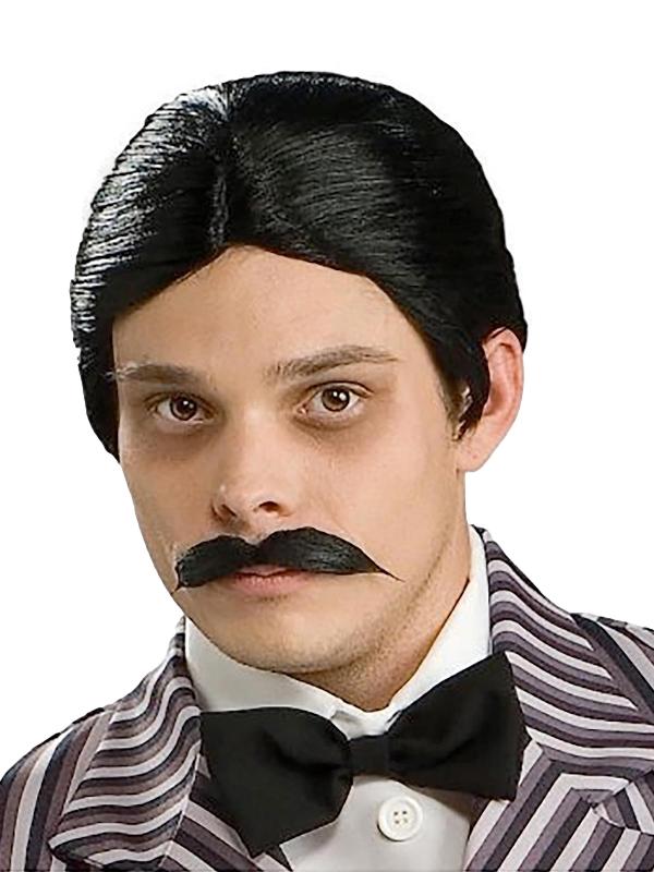 Enter the macabre world of the Addams Family with our Gomez Addams Wig and Moustache Set. Gomez, the iconic patriarch, has charmed audiences for decades with his distinctive black moustache, slicked-back hair, and pin-striped suit. This officially licensed The Addams Family set allows you to fully embody Gomez’s enigmatic charm, whether you’re emulating the classic portrayal by Jon Astin or the charismatic performance by Tim Curry.