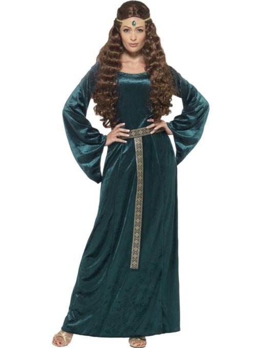 Transport yourself to the enchanting times of Robin Hood and Maid Marion with our Green Medieval Maid Costume for adults. This exquisite ensemble is not only perfect for medieval-themed parties but also offers the opportunity for a whimsical transformation into beloved characters like Princess Fiona or Merida from Brave.