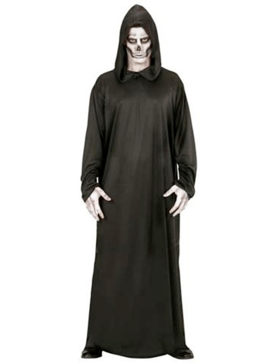 The Grim Reaper Costume Adult is Crafted from black stretchy polyester fabric, this long, flowing robe creates a ghostly and menacing silhouette. The attached hood adds a touch of mystery, to enhance the eerie effect.