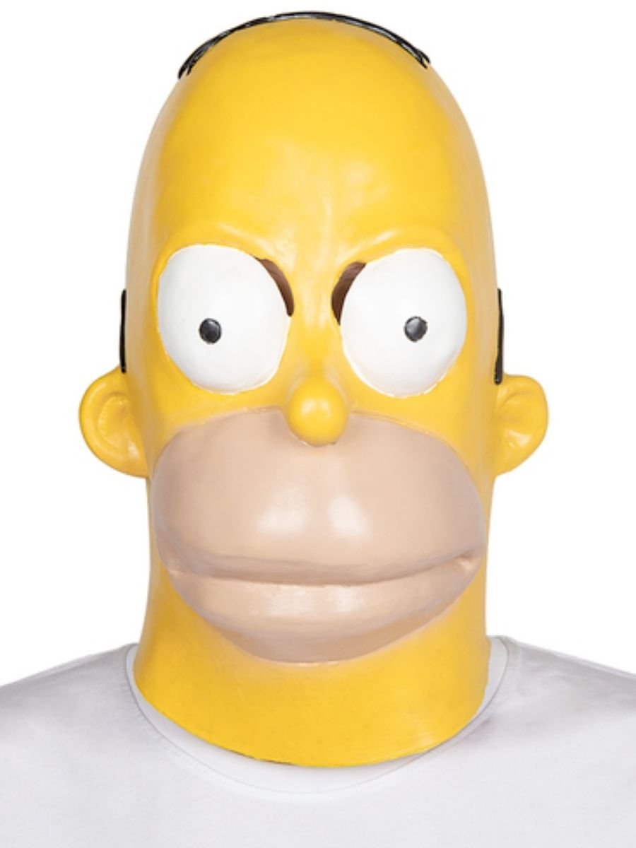Full head Homer Simpson mask made from Latex rubber. Dress up as this classic tv cartoon character funny man. Ideal for any costume character party Doh!!