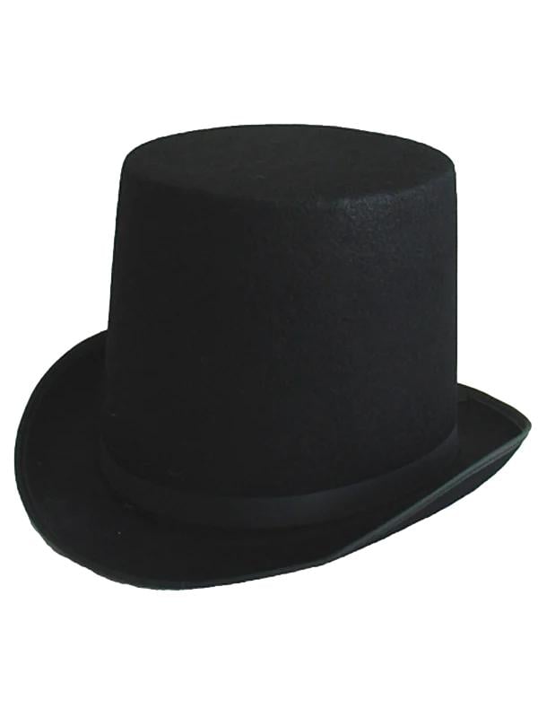 A tall top hat is the perfect addition to an Abraham Lincoln, Ringmaster, Magician or Victorian Gentleman costume. It is also great to complete a fabulous look for the races. This particular top hat is black felt covering and a black ribbon at the base with an elastic Inner for the perfect fit. Fits most adults.