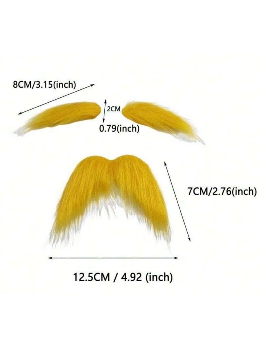 The moustache measures approximately 12.5cm wide and 7cm high, while each eyebrow is about 8cm wide, making them perfectly sized for both kids and adults. With a fun, bushy texture and sunny yellow colour, they’re great for completing a DIY Lorax look or adding a touch of whimsy to a silly old man costume.