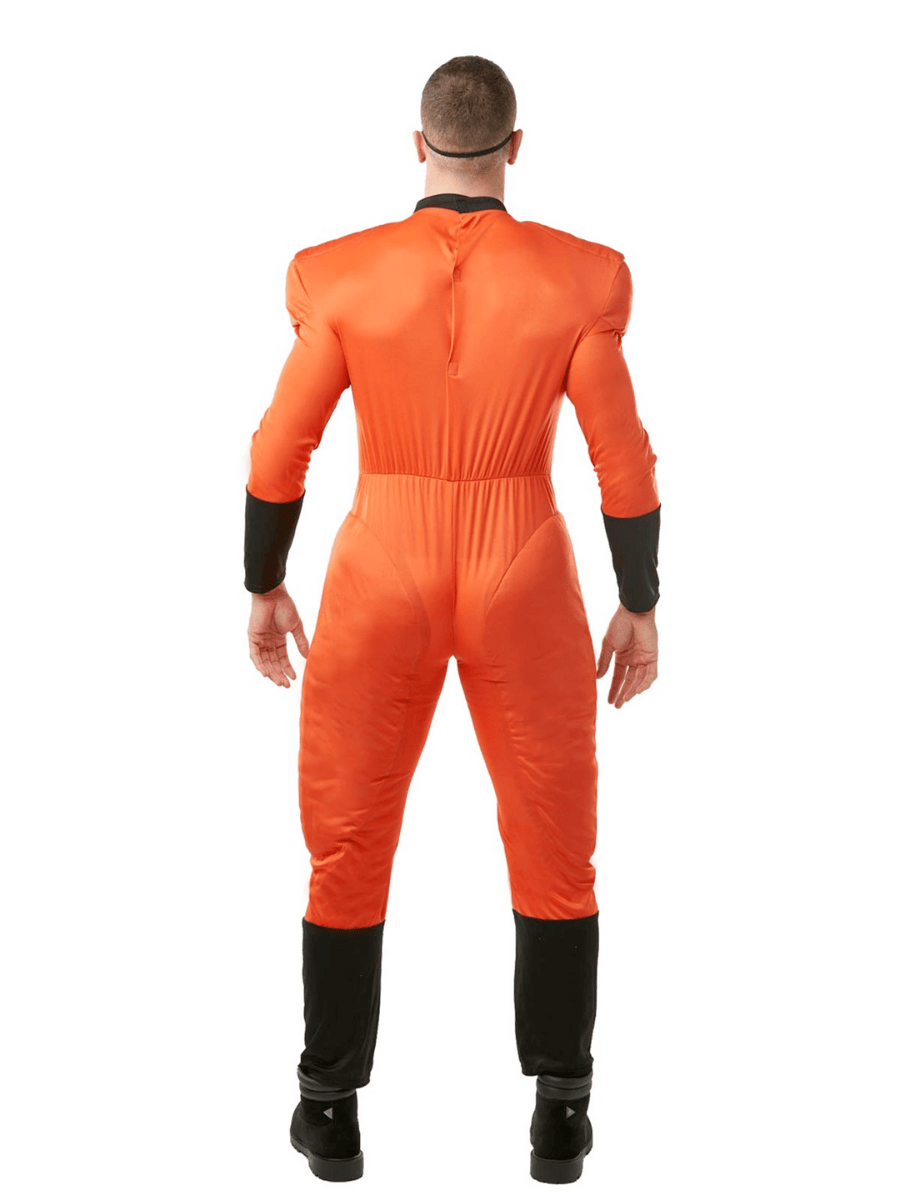 This officially licensed Mr Incredible costume for adults captures the iconic look from Disney•Pixar’s The Incredibles, featuring a bold red and black muscle chest jumpsuit that fastens at the back with a convenient hook and loop closure. The padded torso adds superhero-worthy definition, so you’ll look ready to take on Syndrome, The Underminer, or even a tantrum-throwing toddler (we see you, Jack-Jack). To keep your identity under wraps, the costume includes a black foam eye mask that completes your heroic transformation.