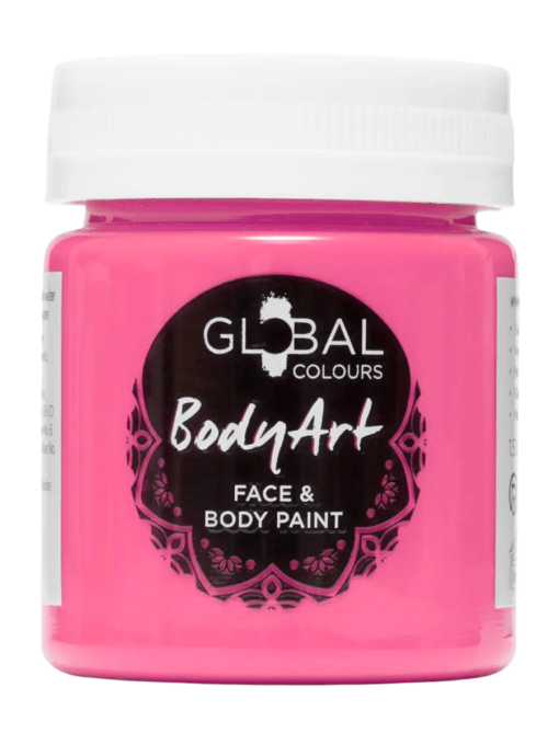 Crafted with a smooth paste texture, our Global Colours Neon Pink Face Paint is bright, quick-drying, and gentle on the skin, making it perfect for sensitive faces. The formula contains only approved cosmetic ingredients, compliant with all worldwide safety regulations, including FDA, EU, and Australian standards. It is vegan, hypoallergenic, and non-toxic, ensuring safety for kids and adults alike.