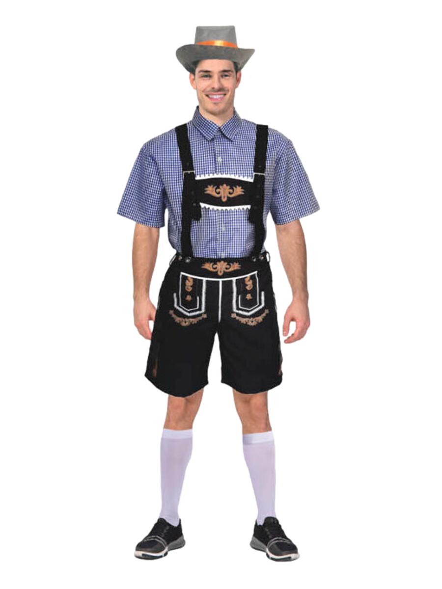 Get ready to make a big splash at Oktoberfest in this Oktoberfest Beer Man Costume! Whether you’re leading a polka or just leading your way to the nearest beer hall.. This outfit will have you looking like a true German brew master. Featuring an adjustable pair of dark blue (almost black) lederhosen with printed traditional details and detachable suspenders, this is the perfect look for when you’re ready to “brat-wurst” a move on the dance floor.