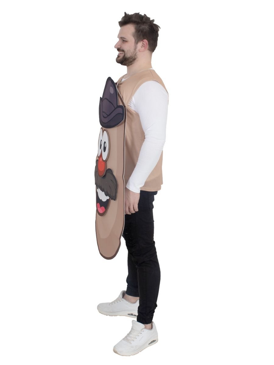 This fun and interactive Potato Head Costume features a felt potato-shaped tabard with an attached sleeveless undershirt in a neutral skin tone. The highlight? A massive set of 16 Velcro facial features that you can stick on, switch around, and customise as you go! Choose from 2 sets of eyes, 3 mouths, 2 glasses, a moustache, eyebrows, a nose, 4 ears, and a classic Potato Head hat—so many possibilities, all in one costume.