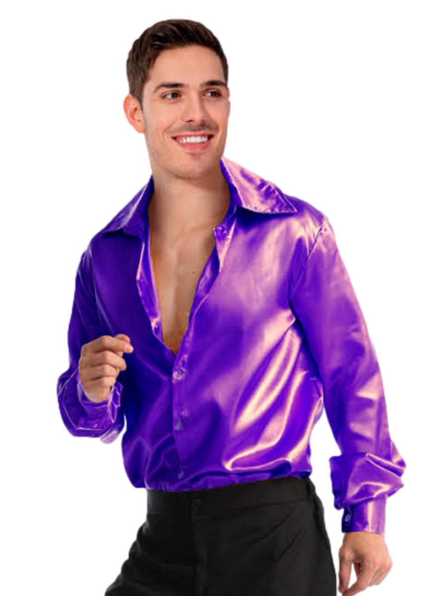Available in men’s standard size, this Purple 70s Disco Shirt invites you to relive the glitz and glam of the 70s with unforgettable style.