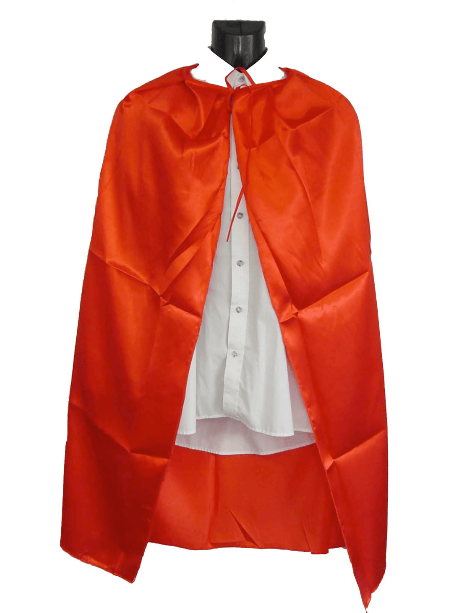 Crafted from luxurious red satin style fabric, this Super Hero Red Cape exudes an aura of super hero sophistication. The tie-up front ensures a secure fit, allowing you to channel your inner vampire or hero with ease.