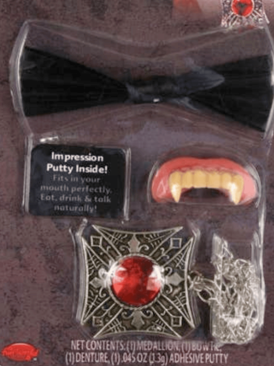 Transform into a blood-sucking creature of the night with our Vampire Instant Kit! This all-in-one kit contains everything you need to complete your spine-chilling vampire costume. Thus making it a breeze to become the ultimate undead at any Halloween or costume-themed event.