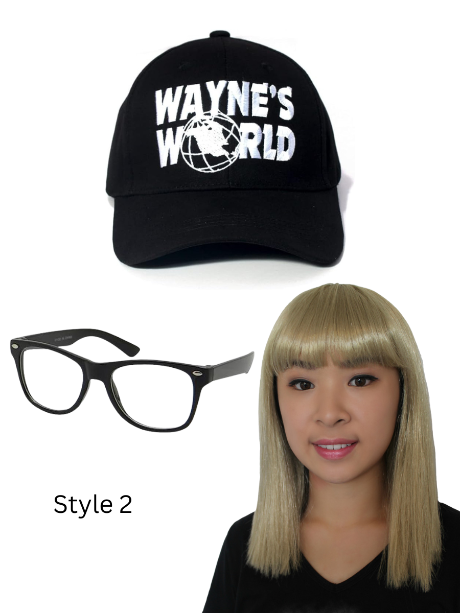 If you prefer to embrace your inner Garth, we’ve got just the thing for you. Our Garth option comes with the same cool black cap, along with black-rimmed wayfarer-style glasses that will make you the epitome of nerd-chic. Complete the transformation with our blonde shoulder-length bob wig, and you’ll be ready to party on, Garth-style. if you’re only after the glasses, you can find them “Here”