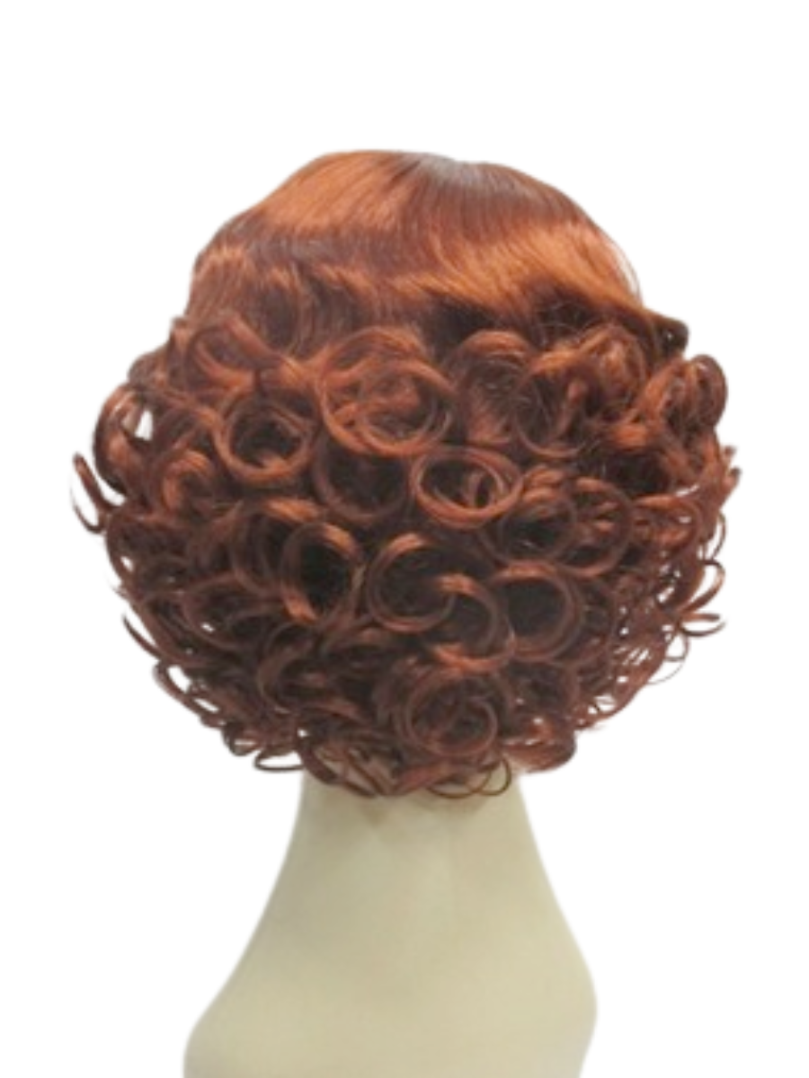 Step back into the roaring twenties with our Cabaret Short Red 20s Curly Wig – the ultimate finishing touch for your flapper-inspired costume. Featuring a classic 1920s silhouette with a smooth top, defined side part, and elegant pincurls, this short auburn-red wig brings vintage glamour to life with ease.