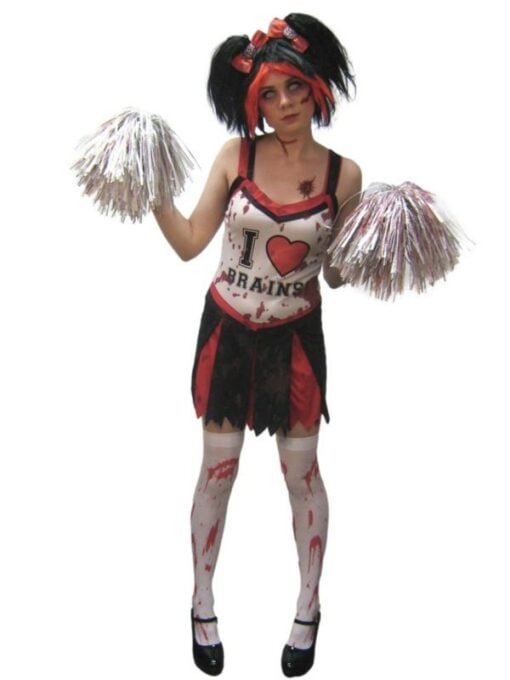 Firstly, this costume isn’t just for show! It’s an experience. As you roam the party grounds, you’ll embody the spirit of the undead cheer squad, rallying the zombie masses with your spooky spirit and haunting presence. Plus, the tattered design and blood stains lend authenticity to your undead transformation, making you the standout star of the zombie apocalypse.
